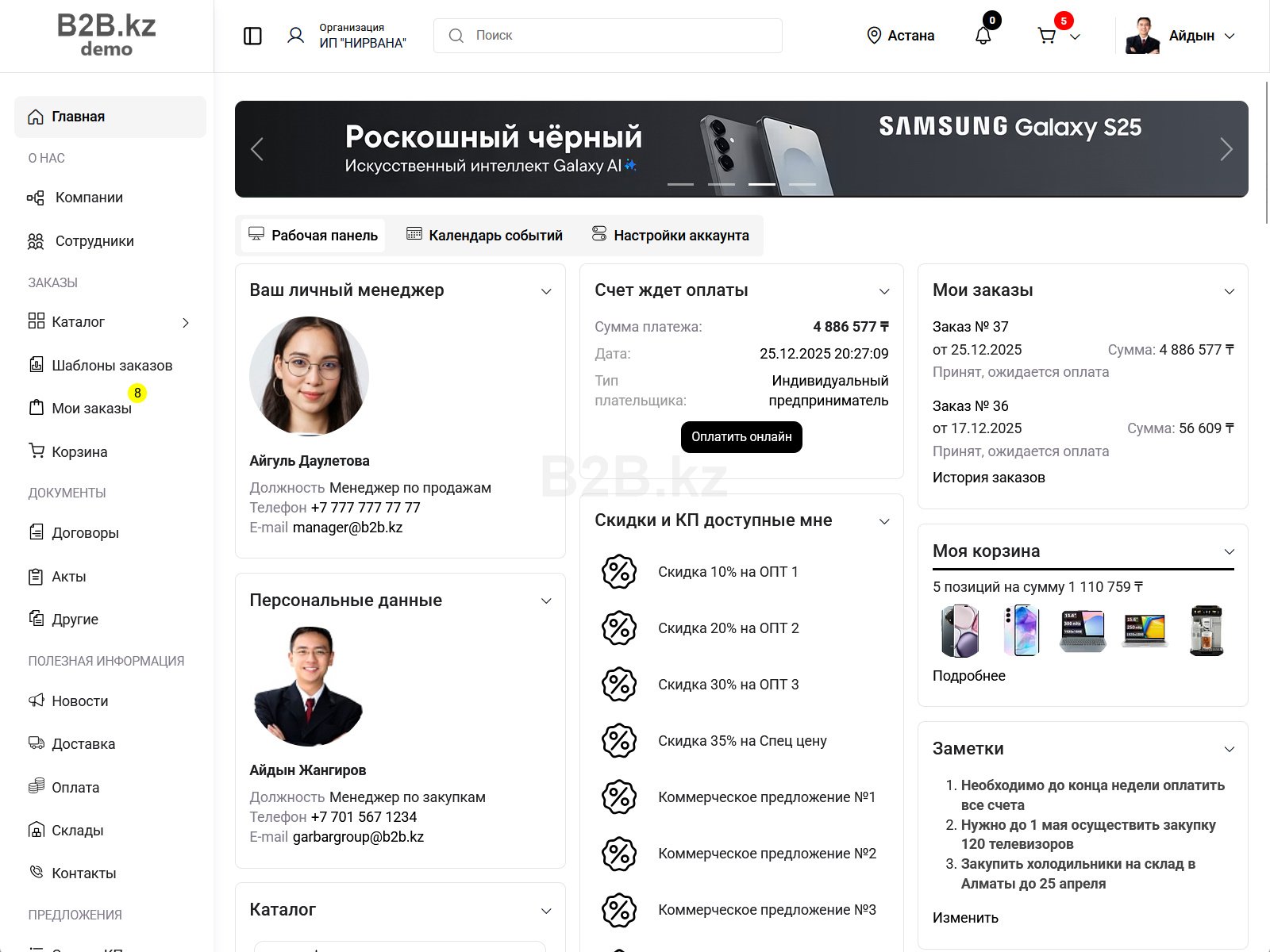 Запустите свой личный B2B портал для своих клиентов и принимайте оптовые заказы 24/7. Меньше рутины — больше продаж и повторных заказов. Клиенты сами оформляют заказы онлайн по своим ценам и условиям. Вы экономите время менеджеров и увеличиваете свои продажи. Дайте покупателям удобный B2B-кабинет с актуальными ценами, остатками и историей заказов — они будут заказывать чаще. Увеличьте свои обороты за счёт автоматизации